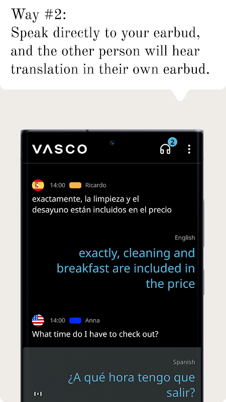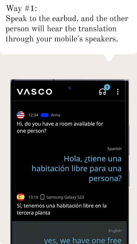 リアルタイムで翻訳されるイヤホンを使って会話を最大限に活用しましょう。ハンズフリー通信体験を活用して、両方のイヤホンでより便利に対話できます。対話者がイヤホンを使用したくない場合は、携帯電話またはタブレットをスピーカーとして使用できます。イヤーデバイスに話しかけるだけで、モバイルデバイスのスピーカーを通じてすべてが翻訳されます。