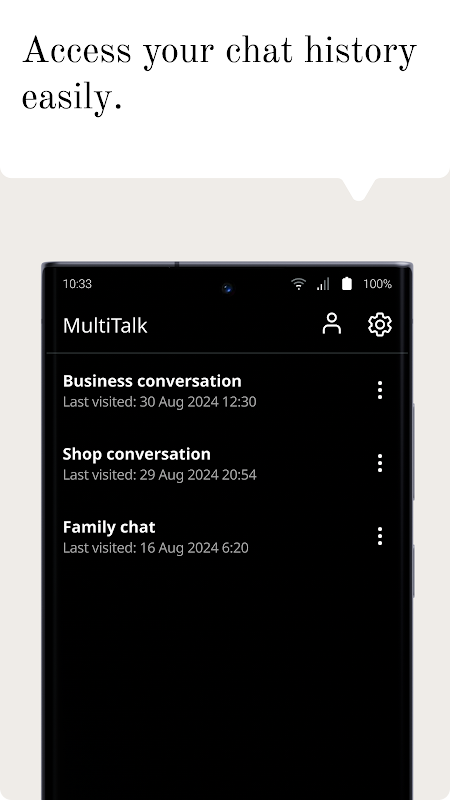 MultiTalk はすべてのテキストおよび音声メッセージを翻訳するため、さまざまな言語でチャットできます。それでも、各ユーザーは選択した言語で翻訳を見たり聞いたりすることができます。