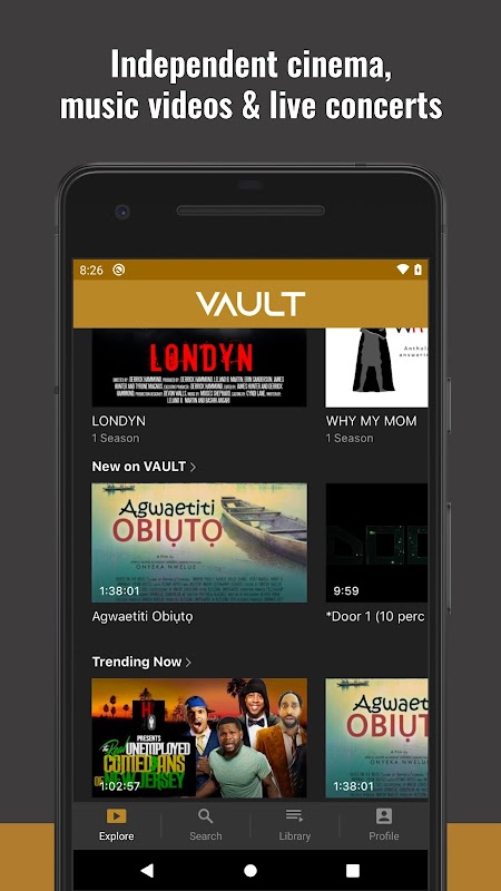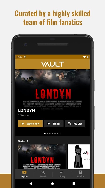 VAULTは、独立したエンターテインメントの広範なカタログを提供します。私たちのコンテンツは、世界中のアーティストやクリエイティブによってキュレーションされています。 VAULTは、独立したアーティストに、聞いて、認識して、感謝するためのプラットフォームを提供することを唯一の目的として作成されました。 VAULTは、独立したエンターテインメント業界が世界のエンターテインメント市場をサポートするバックボーンであることを知っています。 VAULTは、新しく多様なコンテンツを切望するファンに、独立した映画とテレビを提供します。 VAULTは新しい独立の方法です。