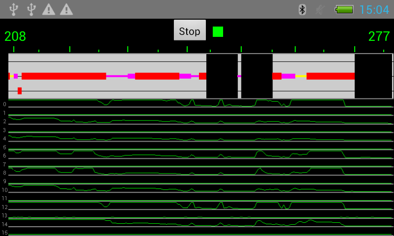 プログラムは内蔵のBluetoothでの超音波探傷器シリーズ」Skaruch」を監視した結果を表示するように設計されています。