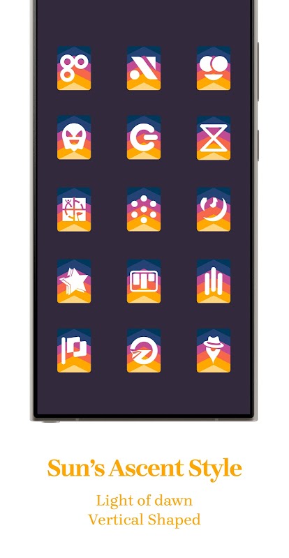 ホーム画面をカスタマイズできる、垂直で鮮やかな太陽の上昇グラデーション アイコン!