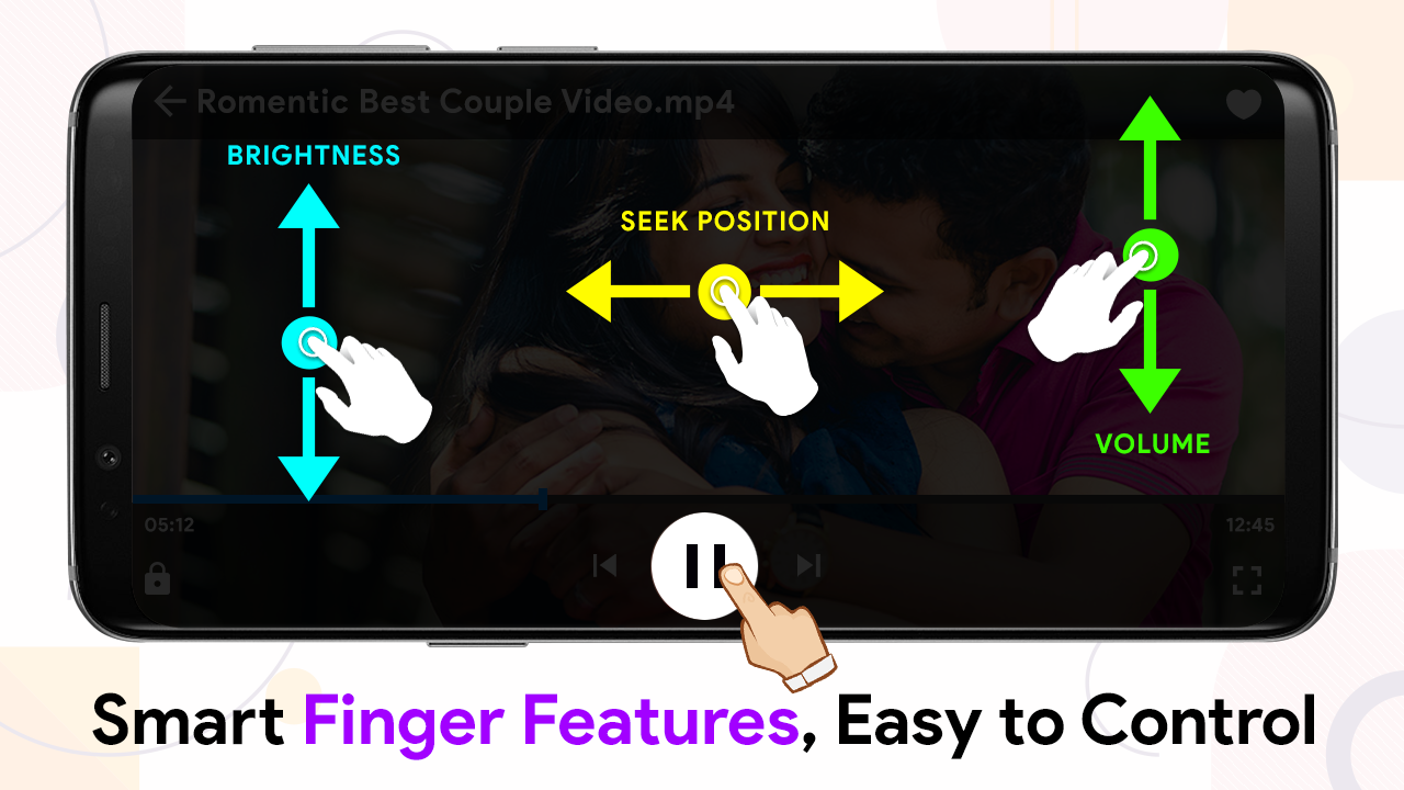 Video Player supports gestures to easily adjust the screen brightness and video volume when you are watching the video.