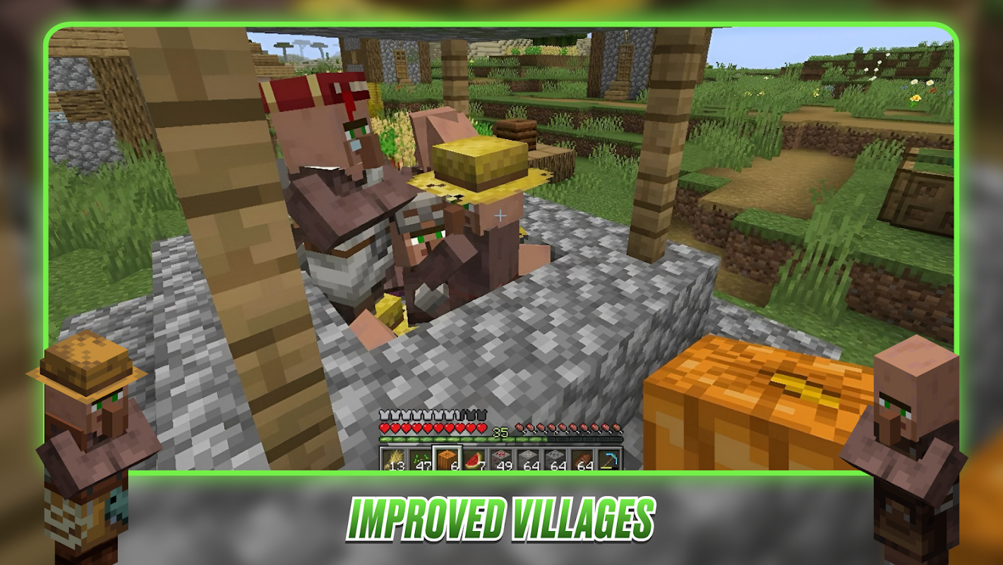 村人と略奪者 Mincraft Pocket Edition はゲームプレイの平凡さを一変させ、各住民は追加のスキルと行動反応を獲得します。 🌍 World Minecraft は、Minecraft 用 Villagers Mod の山賊やその他の住民を、ゲーム アドオン プロセスの参加者だけでなく、MCPE Bedrock で驚くべき行為と現実的な生存を可能にする積極的なクリエイターにもします。 🗺