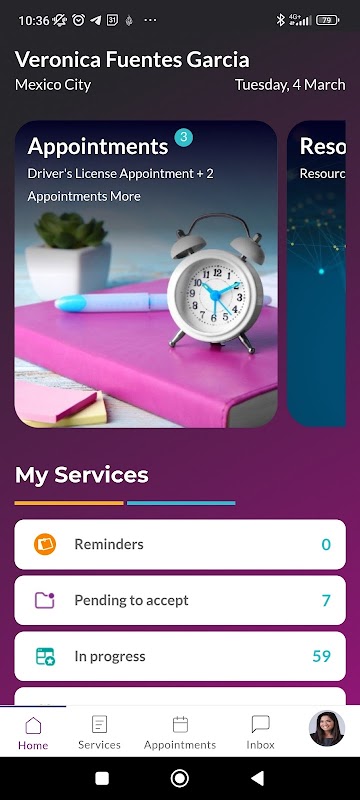 受信箱と通知: サービスプロバイダーからのメッセージとサービスの進行状況に関するリアルタイム通知で最新情報を入手できます。