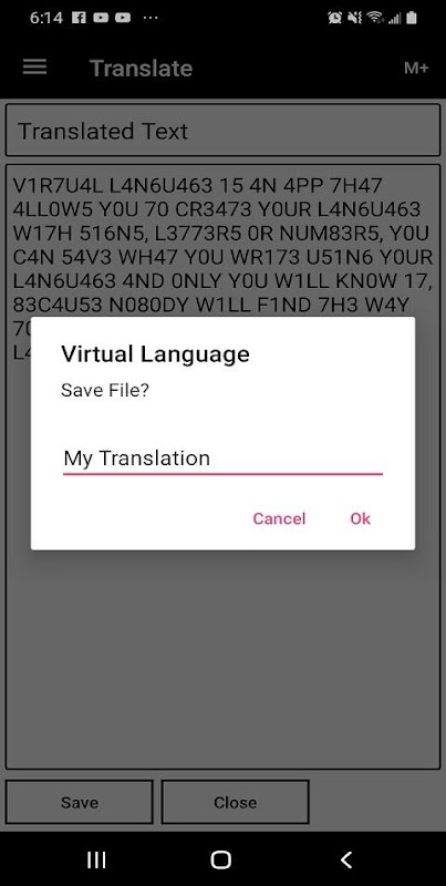 仮想言語を使用すると、必要な言語を作成できます。言語の作成時に指定した文字または記号によってアルファベット文字が非表示になります。このアプリは重要な情報を隠すのに役立ちます。または、楽しみのために使用したり、友人や家族と書いたりすることができます。あなたとあなたが使用している言語を知っている人は翻訳できます。 https://arrowat.com/virtuallanguageの例を参照してください