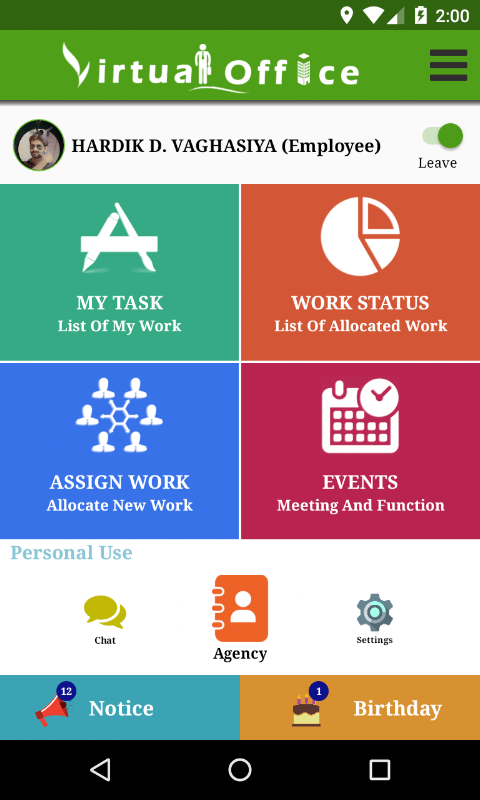 バーチャルオフィスはあなたの後輩従業員のためにタスクを追加するためのアプリケーションです。あなたは、タスクの詳細および複数の添付ファイルで新しいタスクを追加することができます。新しいタスクが彼/彼女のために追加するたびに従業員に通知されます。従業員は仕事のために、サードパーティの詳細と発言を追加することができます。