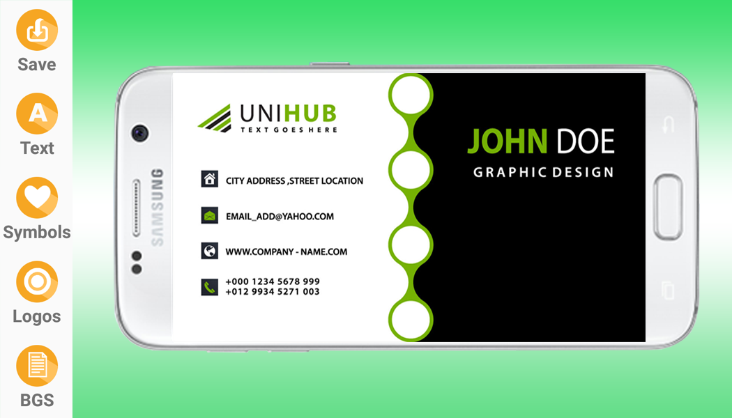 Design your Business Card or Visiting card according to your ideas with using free Visiting Card Maker android application. Visiting Card Maker or Business Card Maker is completely free and user friendly. Business Card Maker with Business templates allows you to easily write and edit your text in several professional fonts.