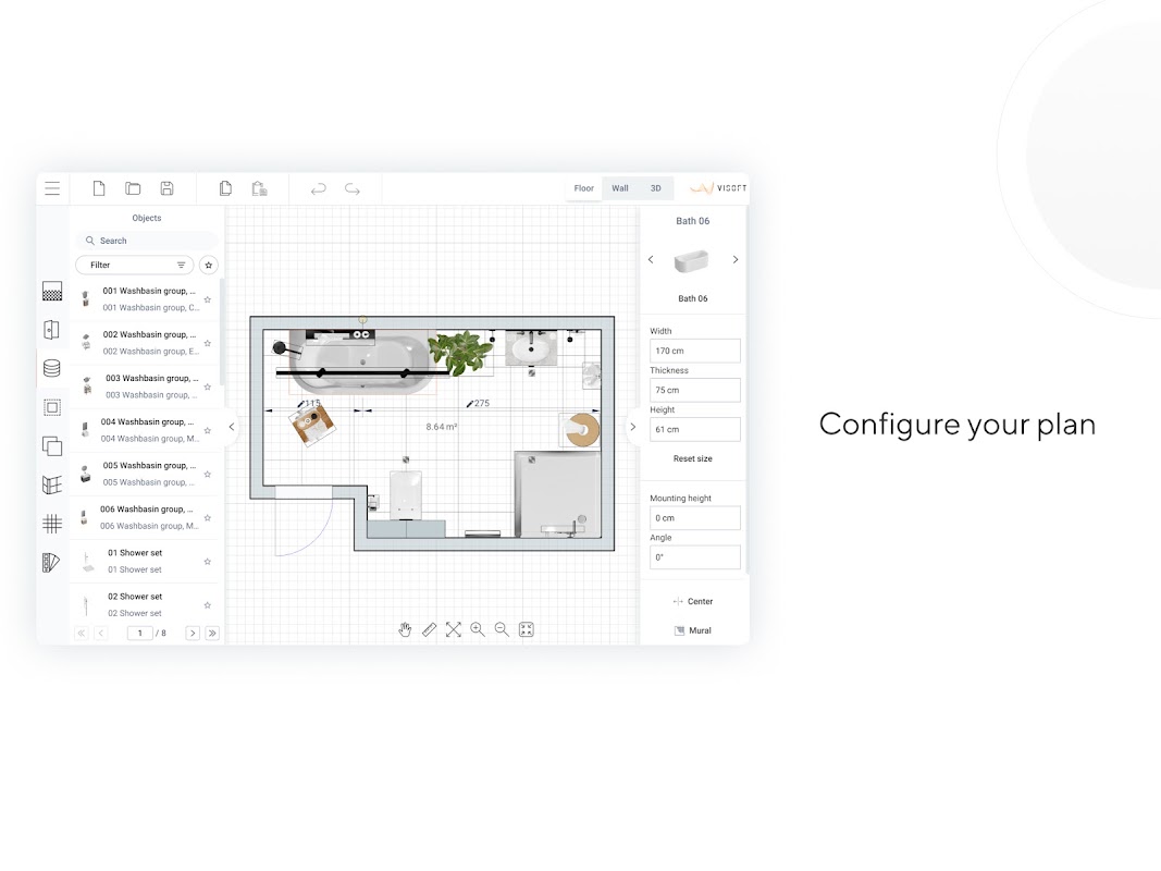 対策と計画を立てる:ViSoftプレミアムユーザー向けに特別にカスタマイズされたアプリは、顧客の場所にあるあらゆる部屋を計画することができます。部屋の描画機能は、ViSoft Premiumと同様に機能します。計画の結果は、設計思想の議論の基礎となります。 ViSoft ViSoft Smartを使用して、デジタルおよびモバイルカスタマー相談をお楽しみください。
