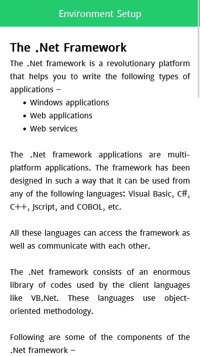 Basic Visual Basic .NET Programming App is essential for programmers. It will be helpful for software developing and app developing. This Learn Visual Basic .NET Programming tutorial app will provide you example with explanation. So now you can carry your Visual Basic .NET Programming Course offline anywhere by this app and can learn anytime.