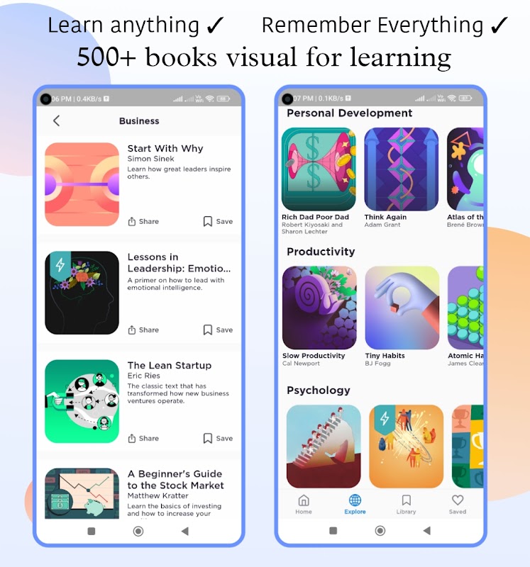 必須知識をマスターする: 心理学、哲学、歴史、金融、リーダーシップ、ビジネス、健康、科学、テクノロジーなどのさまざまな分野についての洞察を獲得します。あなたの興味やキャリア目標に関係なく、VisualMind はあなたの成長を助けるツールを提供します。
