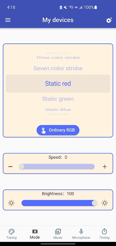Bluetooth経由でランプの色を制御するためのアプリケーション。