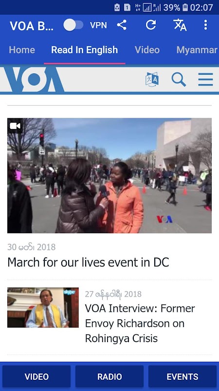 အမေရိကန်နှင့်ကမ္ဘာ့သတင်းများ၏တိုက်ရိုက်အသံဗီဒီယိုကိုဗမာနှင့်အင်္ဂလိပ်ဘာသာဖြင့်ကြည့်ပါ။