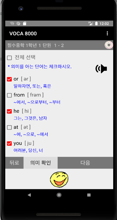 6. 40단어를 기준으로 8바퀴를 돌면서 암기하면 하루 암기할 1단원이 끝난다. 모르는 단어를 볼 때 뇌가 강하게 자극받으므로 ‘글쎄요’로 표시한 단어만 반복된다.