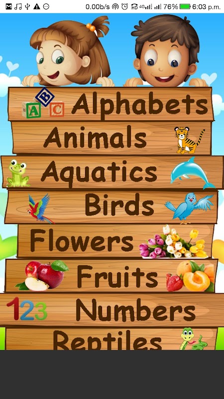 Vocabulary app for kids which gives knowledge about alphabets, numbers, colors and many more.