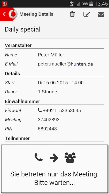 電話会議のためにボーダフォン会議アプリを使う。