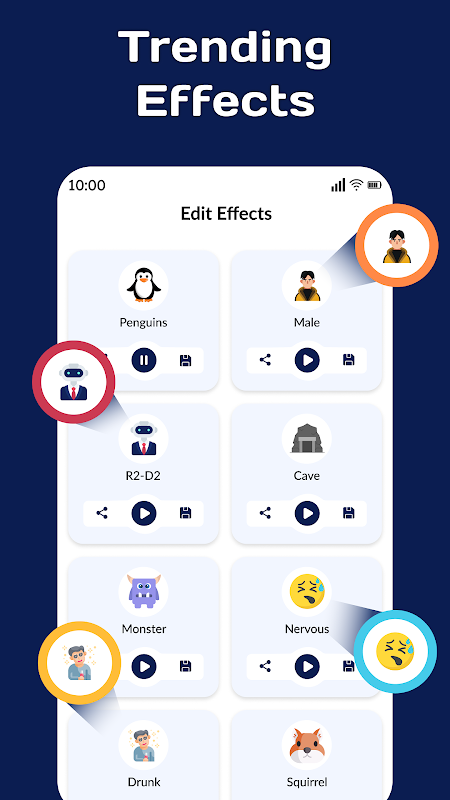 ボイスチェンジャー を使用すると、会話がさらに面白くなります。 Voice-Changer は、ユーザーに自分の声を変えることで素晴らしく面白い体験を提供します。 エフェクト付きボイスチェンジャー を使用すると、女性の声を男性の声に、またはその逆に変更したり、機能を最適化することで、自分の声を漫画の声、ロボットの声、モンスターの声、子供の声などに変更したりすることができます。 Voice Editor は間違いなくあなたを失望させません。