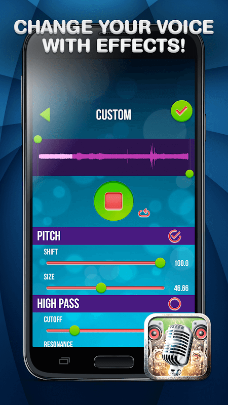 🎼ボイスレコーダーとオーディオエフェクト付きサウンドチェンジャー 🎼 は、あなたが話す方法に不思議になり、あなたの演説を完全に変容させ、認識不能にします。マイクに話すだけでスピーチを修正します。あなたが話したり歌ったりしている間に自分自身を録音し、希望するクレイジーオーディオエフェクトとフィルターを録音に追加して、スピーチを変えてください。エコー、ディストーション、ピッチとトレモロ、面白いオーディオエフェクトを調整し、話し方を変えます。ボーカルの変更を新しいオーディオファイルに追加します。着メロ、コール、ーン、通知またはアラームとして設定する素晴らしい曲を作成します。今すぐインストールして、録画を素早く簡単に録画、編集、保存、共有してください。