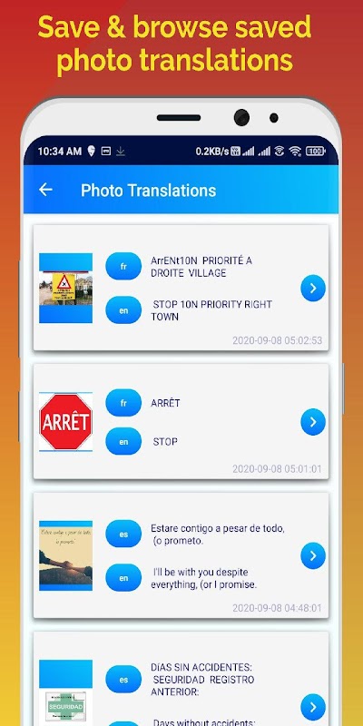 Voice TranslatorはAndroid用の無料翻訳アプリです。テキスト、音声、テキストをすべての言語の写真から翻訳できます。 Voice Translatorはあなたの声を翻訳し、訳した結果を朗読することができます。 Voice Translatorを使用すると、外国人の友人と言語障壁なしで旅行、コミュニケーション、ソーシャルネットワーキングができます。 Voice Translatorは、あらゆる言語を学び理解するための言語ツールとしても使用できます。 Voice Translatorを使用すると、カスタム翻訳辞書として使用できる翻訳を保存することができます。あなたの声、写真は翻訳されてローカルに保存され、後で他の言語にも翻訳されます。