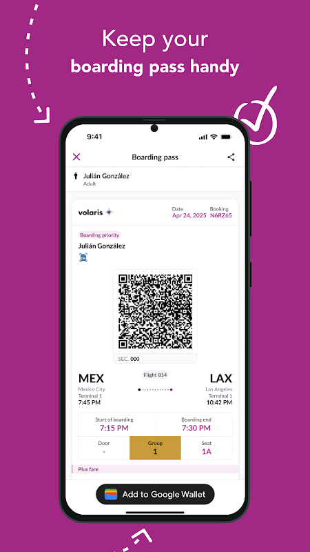 Volaris アプリを使えば、旅行に必要なものがすべて 1 か所に集まります。