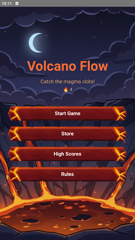 Volcano Flow! Catch the fiery magma clumps, test your reflexes, and survive.