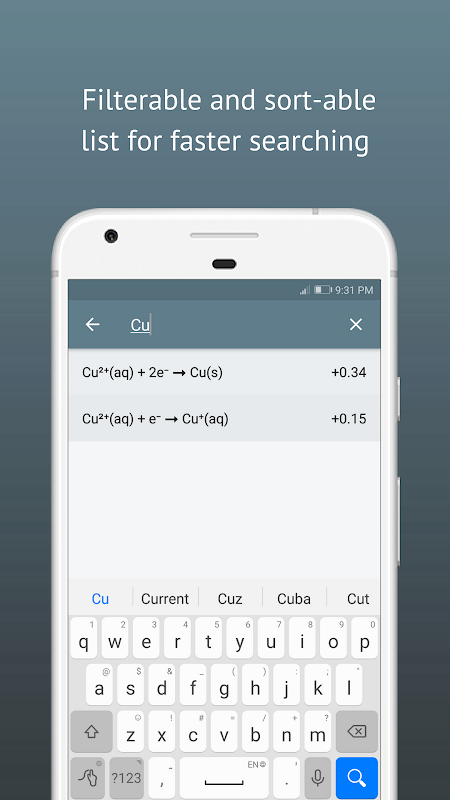 このアプリでは、標準還元電位(SRP)リストをもう参照する必要はなく、各半電池の標準還元電位に基づいて、ボルタ電池のアノードとカソードを識別します。