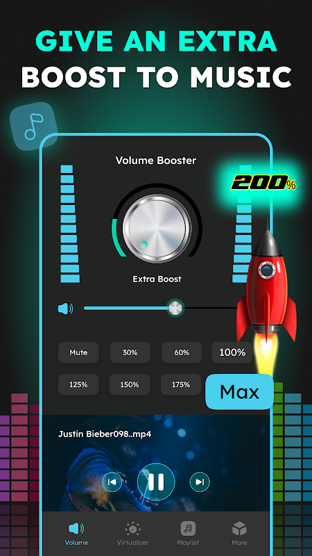 ✔️ボリュームブースターには、ベースブースターを設定するミュージックイコライザー機能があります