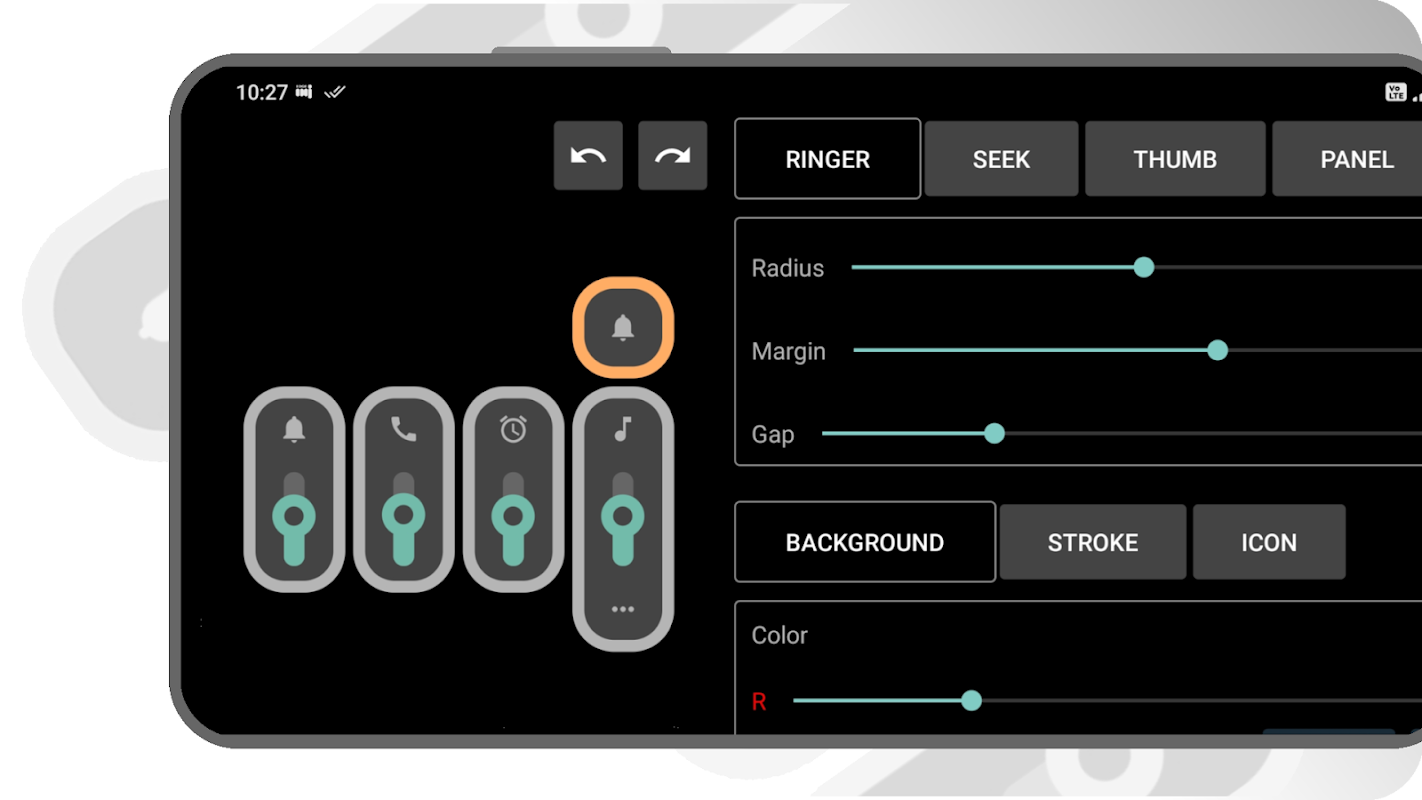 画面の端にある仮想ボタンとカスタマイズされた音量コントロール パネル。