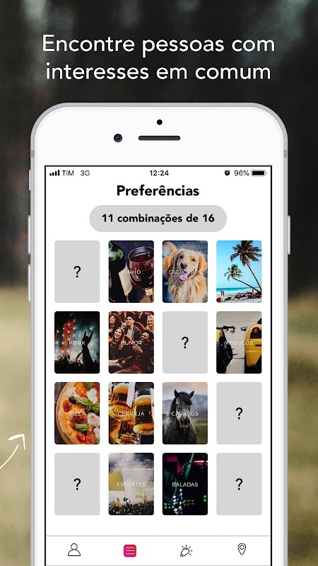 Acreditamos que conhecer pessoas online vai muito além de apenas uma ótima selfie. Queremos que você descubra as preferências em comum antes de interagir, afinal, a personalidade é o fator mais importante.