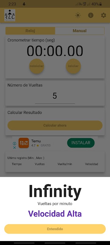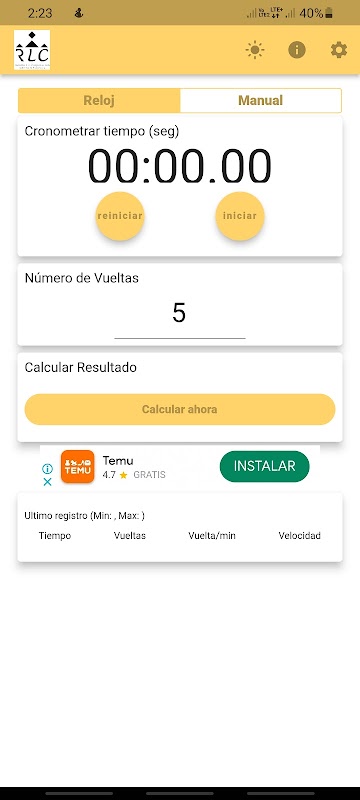 すぐにcharroによって行われたラップ数を計算し、ラップ数と時間を入力してラップ数と結果を知るだけでなく、結果:低速、中速、高速。