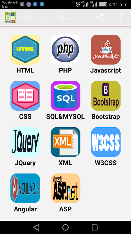-> This is app is completely offline and the smallest size application of all the existing w3school apps.