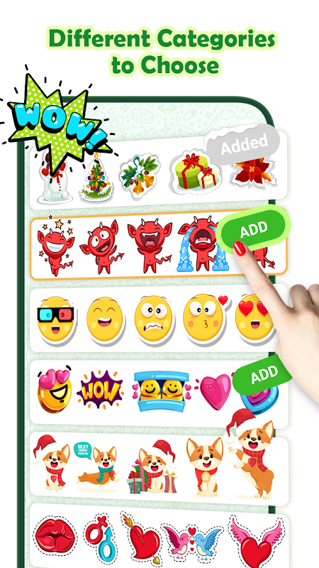 私たちのステッカーメーカーチームはあなたのために豊富なステッカーを用意しました。誕生日ステッカー、クリスマスステッカー、バレンタインステッカー、ラブステッカー、アニメステッカー、ホリデーステッカー、wastickerappsミームなど、必要なテーマがすべて含まれています。ステッカーを探したり、ステッカー メーカーを使用して新しいステッカーを作成したりするためにエネルギーを無駄にする必要はありません。当社のステッカーは、インド、インドネシア、スペイン、メキシコ、ロシア、トルコ、アメリカ、イギリス、香港などを含むすべての国をサポートしています。あなたがする必要があるのは、StickerApps を無料でダウンロードすることだけです。新しいステッカーを追加してステッカー パックを更新する必要があります。