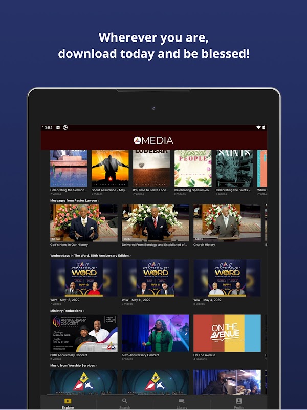このアプリは、いつでもどこでも、私たち全員が(仮想的に)一緒に礼拝し、すべてのサービスと特別イベントを 1 つのプラットフォーム経由で体験できるように設計されています。