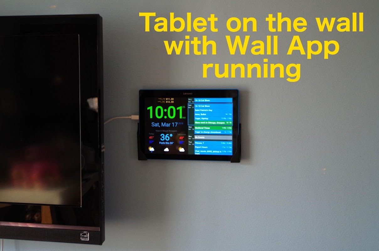 壁のタブレットは、時間、天候やカレンダーのイベントを示してい