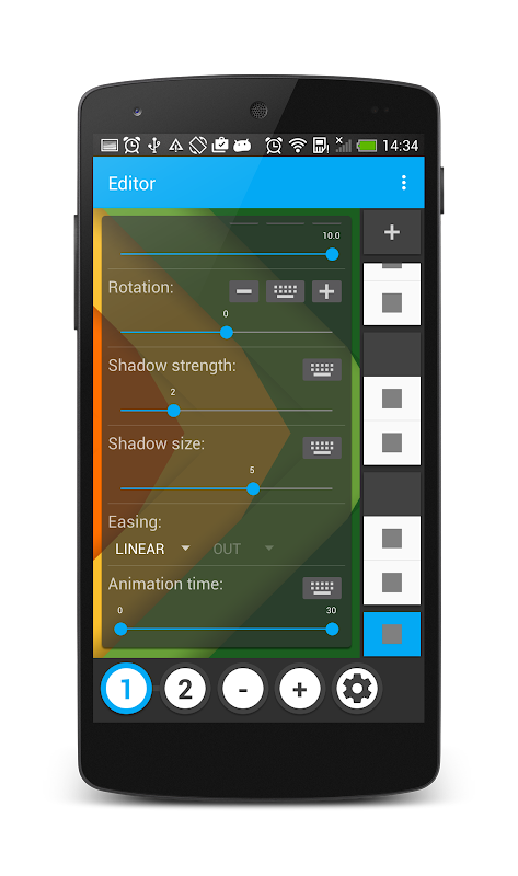 WallMateは、強力なアニメーションの背景の作成者です。種々の内蔵形、色、異なる特性及び時間制御機能から選択します。ビルドとアニメーション化、共有、材料設計をダウンロードし、最小限の、ベクトルOpenGLのライブ壁紙。