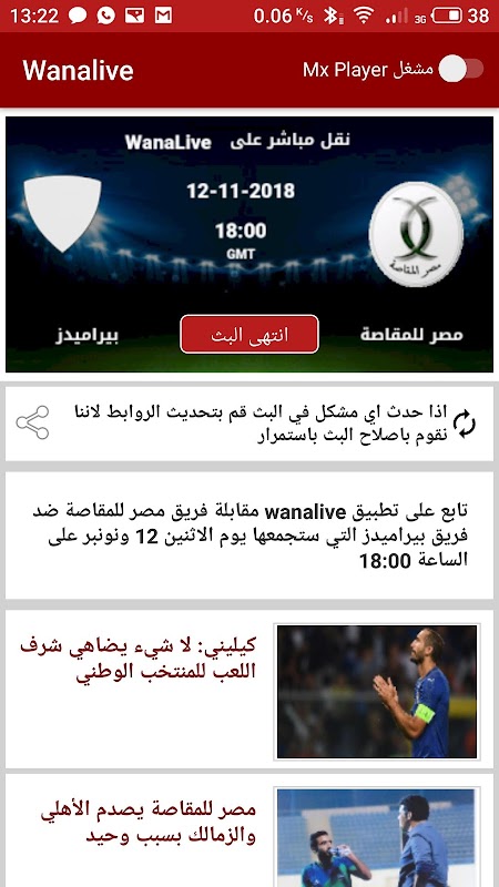 نقدم لكم تطبيق وانا لايف wanalive , الخاص بموقع وانالايف wana live , حيت نقدم ملخصات و نتائج المباريات لكل من