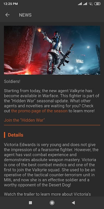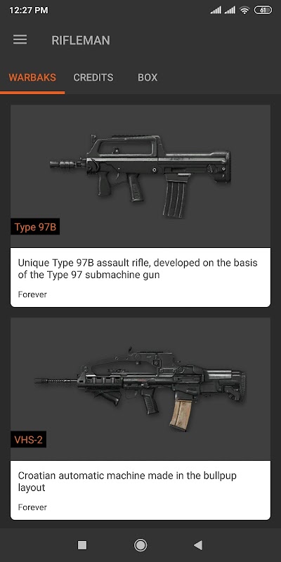 The application contains information about weapons, badges, modules, ranks of the project Warface.