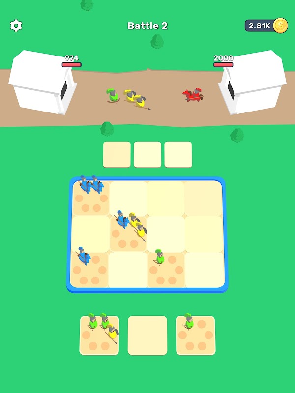 戦士を並べ替えて合体させ、戦闘で敵を倒すために送り込みましょう!