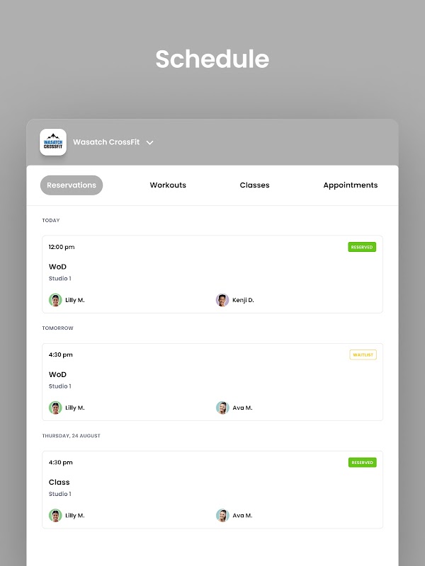 Wasatch CrossFit 会員向けのクラス予約とアカウント管理