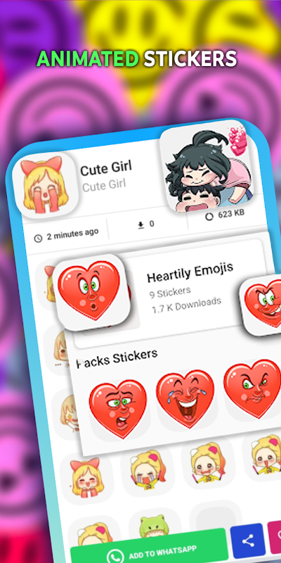 WhatsAppの新しいステッカーコレクション(wastickerapps)で感情(愛、喜び、幸福)を表現してください。これらのアニメーション化された WastickerApp を友達と共有して、会話をより暖かく面白いものにしましょう。私たちのステッカーを使用すると、気持ちをよりよく表現し、素敵な会話をすることができます。また、当社のステッカー メーカーを使用して無料で WhatsApp 用の独自のステッカーを作成することもできます。