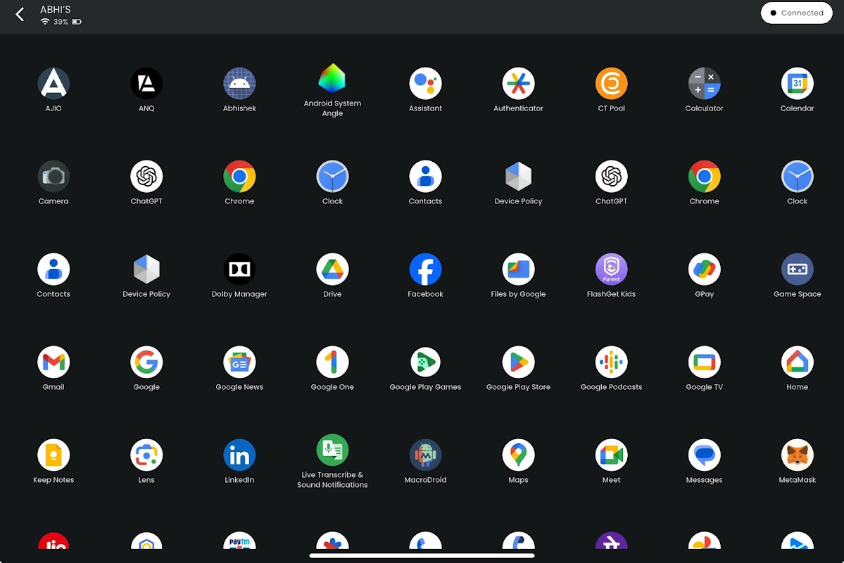 📲 ライブ画面の共有と制御: 指先でフルリモートアクセス