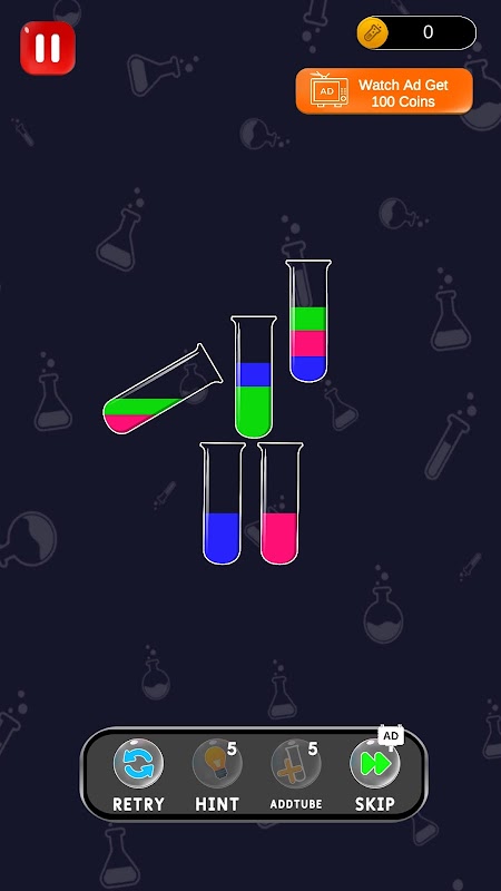 このカラーウォーターソート3Dは、とても簡単でありながら挑戦的なカラードロップゲームです。このカラーマッチングゲームで必要なのは、頭を使ってすべてのチューブの色を正しくソートすることだけです。この素晴らしいカラーウォーターソートパズルは、あなたを何時間も夢中にさせるでしょう。このカラーマッチソートゲームで、どんどんレベルアップしましょう。水の色分けパズルを解く際は、行き詰まらないようにご注意ください。楽しさいっぱいの水の色合わせパズルをお楽しみください。