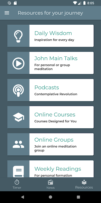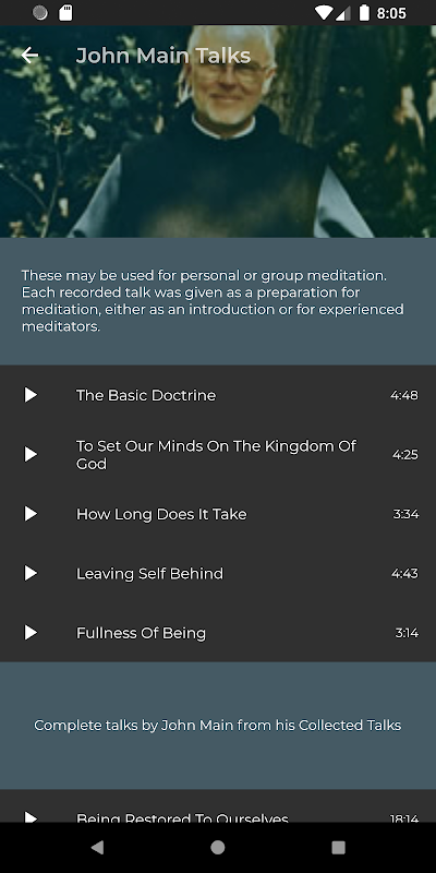 -瞑想タイマーページから瞑想の開始と終了の祈りにすばやくアクセスでき、さらにFr.ローレンスの瞑想手順。