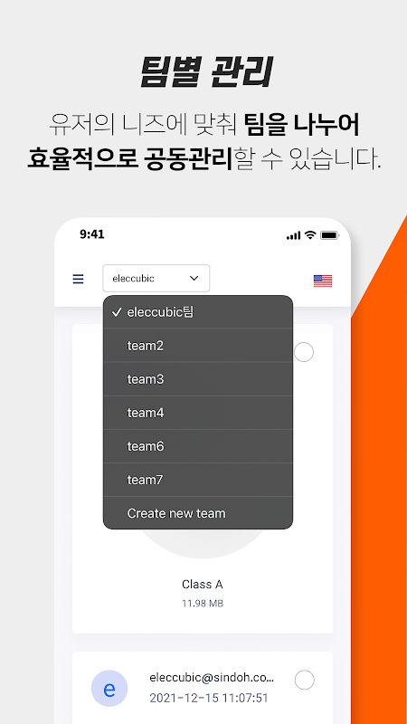 프로젝트 팀 혹은 회사의 조직별로 Team을 생성하고, 3D 프린팅 자원에 대한 접근 권한을 설정할 수 있습니다.