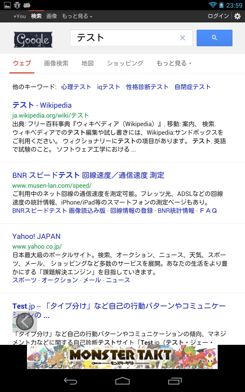 1.アプリを起動すると、Googleのサイトが表示されます。
