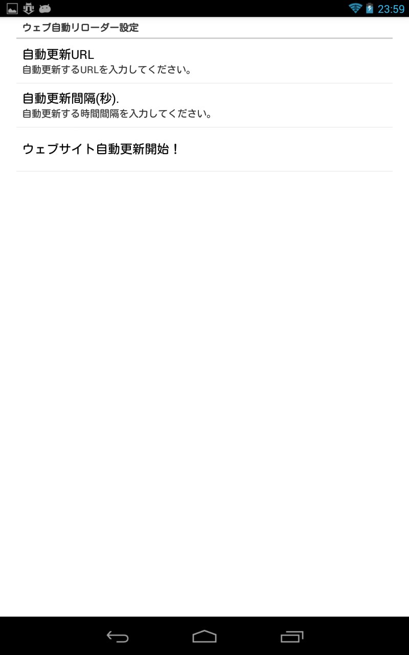このアプリは指定したウェブページを、指定した時間間隔で自動的にリロードし続けるアプリです。