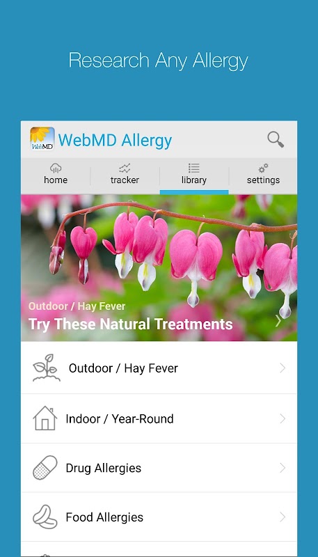 Based on the allergies you have, the free WebMD Allergy app for Android will help you prepare for each day with a personalized allergy and weather forecast along with doctor-approved tips that can be customized to your and your family’s specific allergies. You can also track how you feel, RECORD symptoms and treatments, and add notes through an easy to use allergy tracker. Before your doctor appointments, generate reports to share with your doctor.