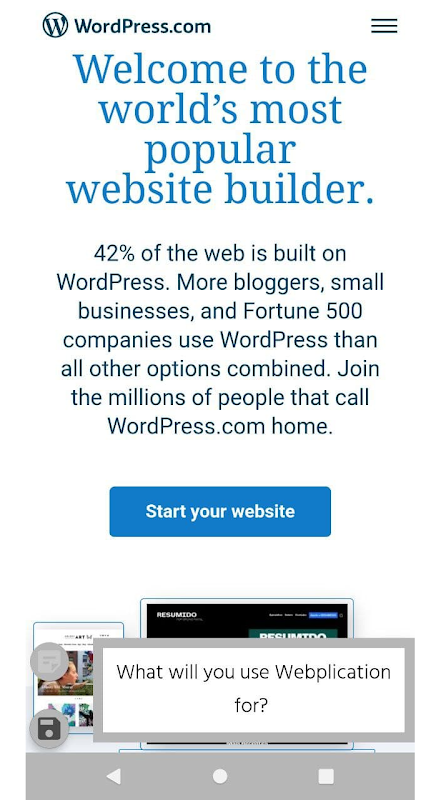 Webplication was made to give you breathing room in the form of a website sandbox with all the necessity of an application. Imagine your favorite website doesn't have an application on the Google Play Store. Now, you can make an application using just their website. Webplication will create all the feel of an application and all the power of a web application with the productivity to get you done managing your affairs quickly. Of course, some bare additions have been made to increase your user experience, including a quick note pad, where you can make notes, so you can make annotations as you browse.