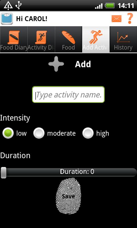 • Check your personal diary or weight loss journal to see daily consumption and activities at a glance.