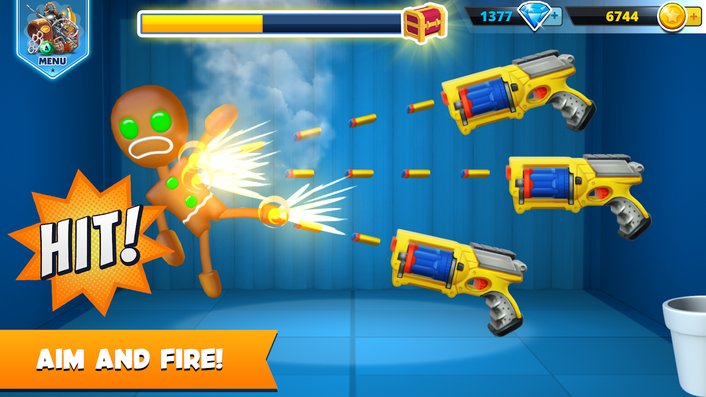 Oh, you want guns? We’ve got ‘em all. Pistols, SMGs, Assault Rifles and much more! Get the target in your sights and let it rip! If you like shiny things that pack a real punch then check out the gold desert eagle for a super fun blast!
