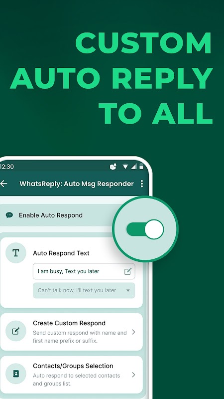 この WhatsReply: Auto Msg Responder アプリは、WhatsApp と提携していません。 WhatsApp は WhatsApp Inc. の登録商標です。